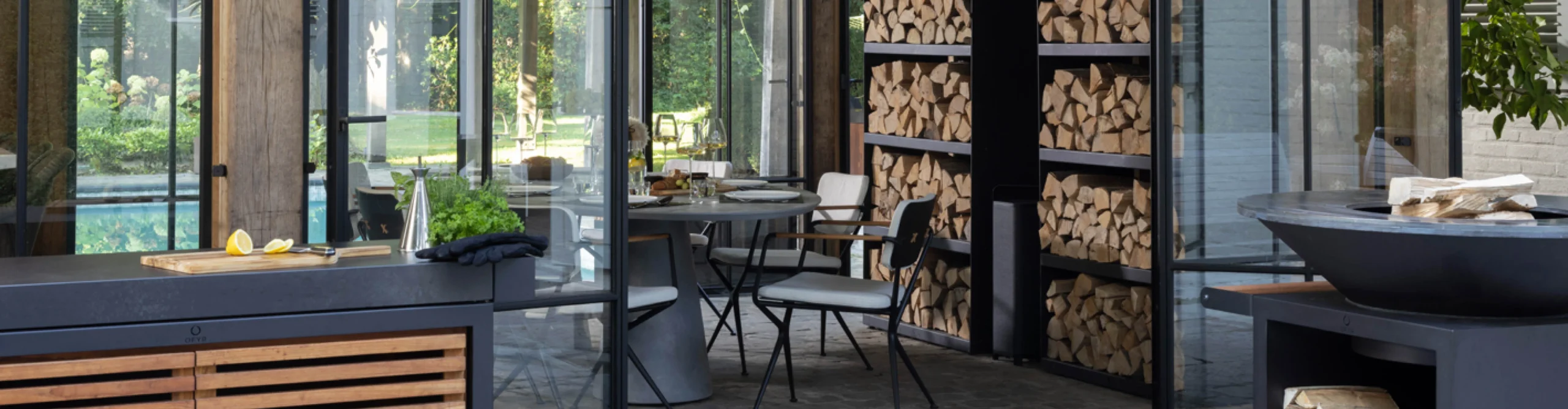 OFYR Wood Storage trasforma una pila di legna in una scenografica parete. Un ripiano superiore incernierato tiene gli utensili e altri oggetti ben nascosti e, con tre misure disponibili, è facile trovare una soluzione adatta al tuo spazio. Il loro design senza tempo permette ai nostri Wood Storage di integrarsi alla perfezione a qualsiasi spazio esterno, specialmente se abbinati alle nostre unità di cottura. Quando riempiti di legna, diventano un elemento di sicuro impatto visivo per il tuo giardino, un evento o il muro del tuo ristorante.